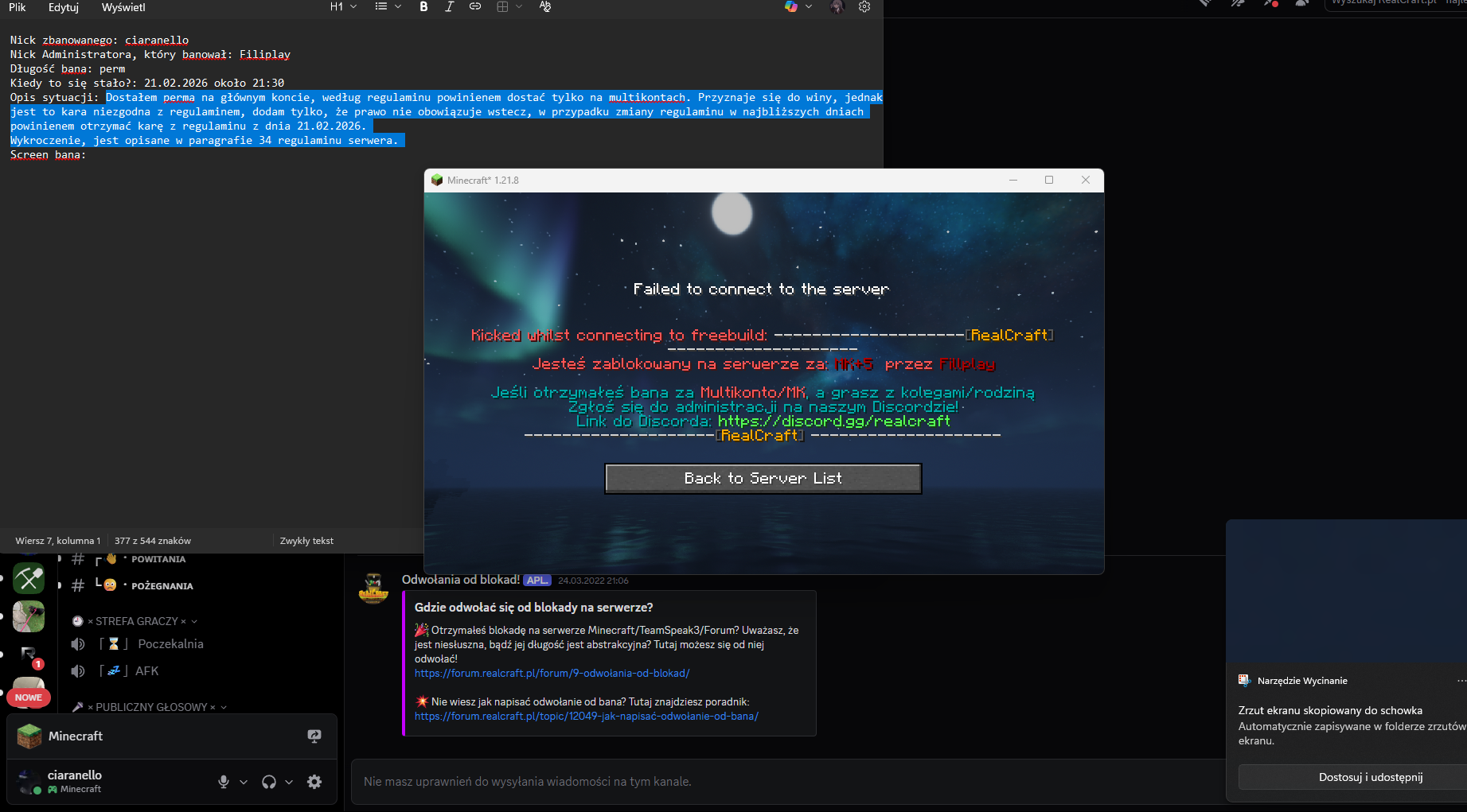 Ban dla użytkownika ciaranello i innych kont korzystających z tego samego adresu